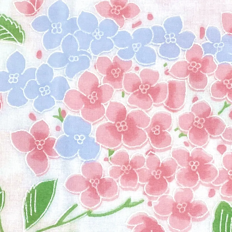 柄は紫陽花、藤、花手毬、桜の四種類を取り揃えました。 色は桃、紫、青の三色がございますが、ご指定はできません。